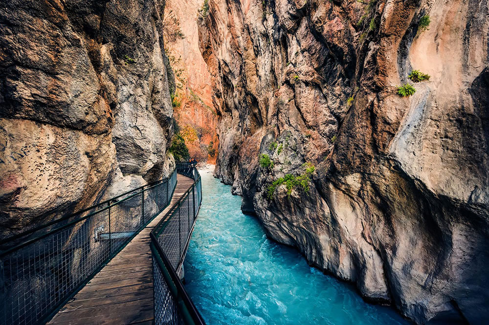 Saklikent GorgeLocated near Fethiye, Saklikent Gorge is a striking natural wonder and one of Turkey’s best-kept secrets. Carved through dramatic cliffs, the gorge features clear, icy waters flowing through a lush valley, creating a cool and refreshing escape from the summer heat.
